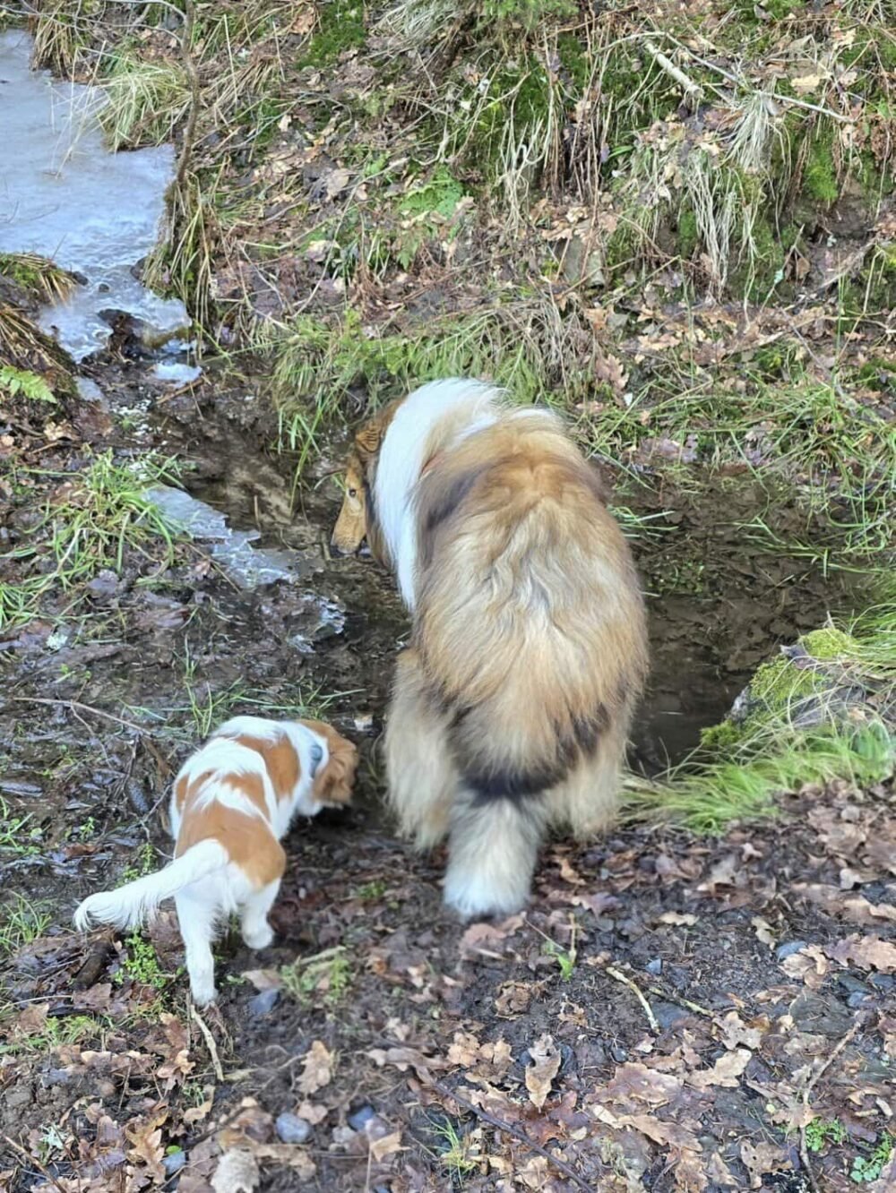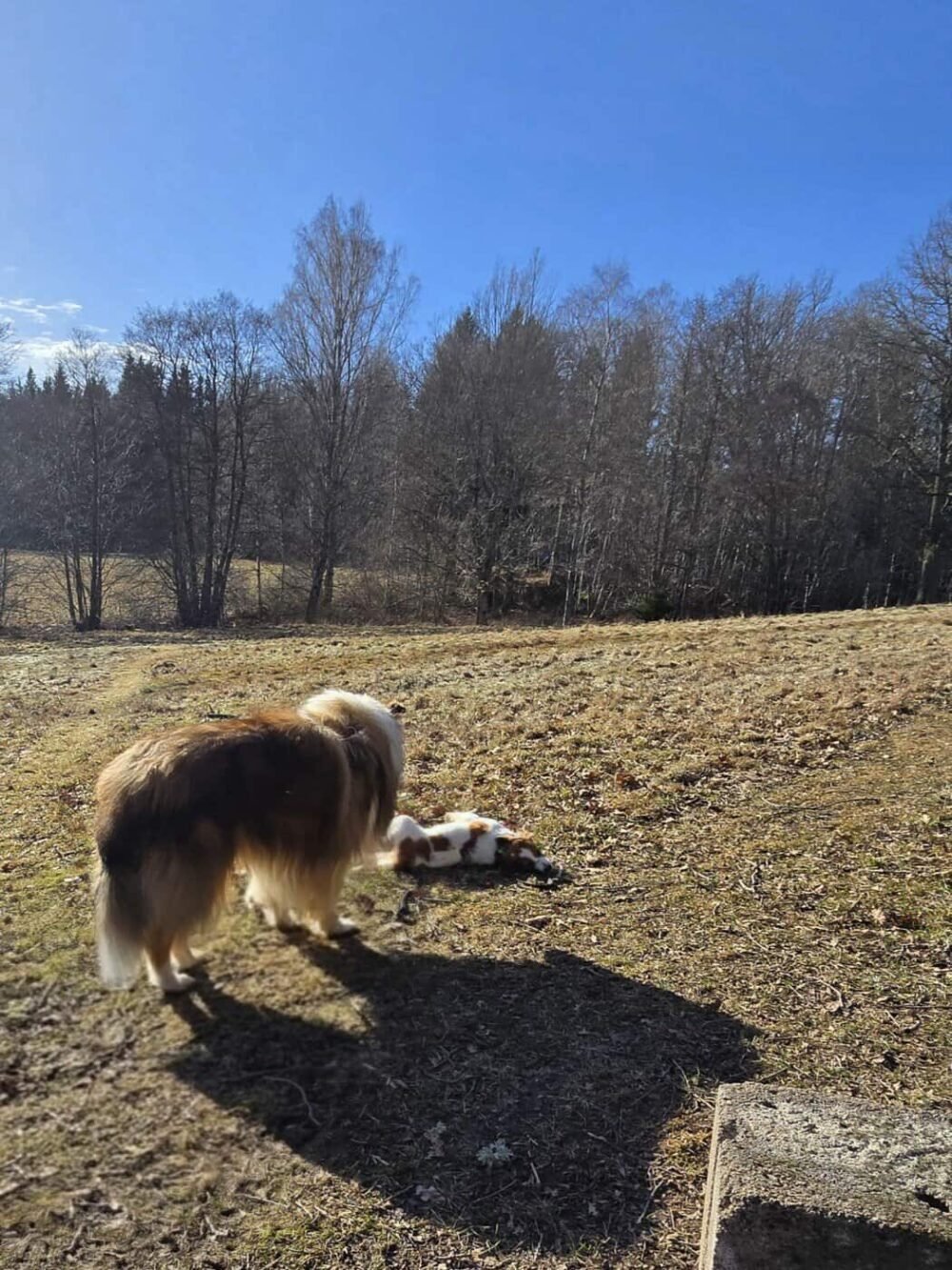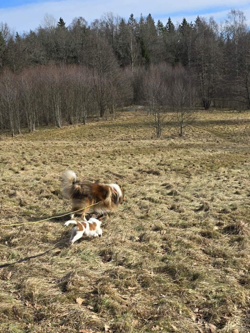 Han behöver också koppeltränas mera och tränas mer i största allmänhet så att det går att köra vanliga promenader med båda hundarna. Just nu går vi mest i skogen när vi går med båda hundarna eftersom vi vill att Felix ska fixa hundmöten på egen hand innan han gör det tillsammans med Ville. Felix är inte speciellt bra på hundmöten just nu, han vill fram till alla. Så här krävs definitivt träning.