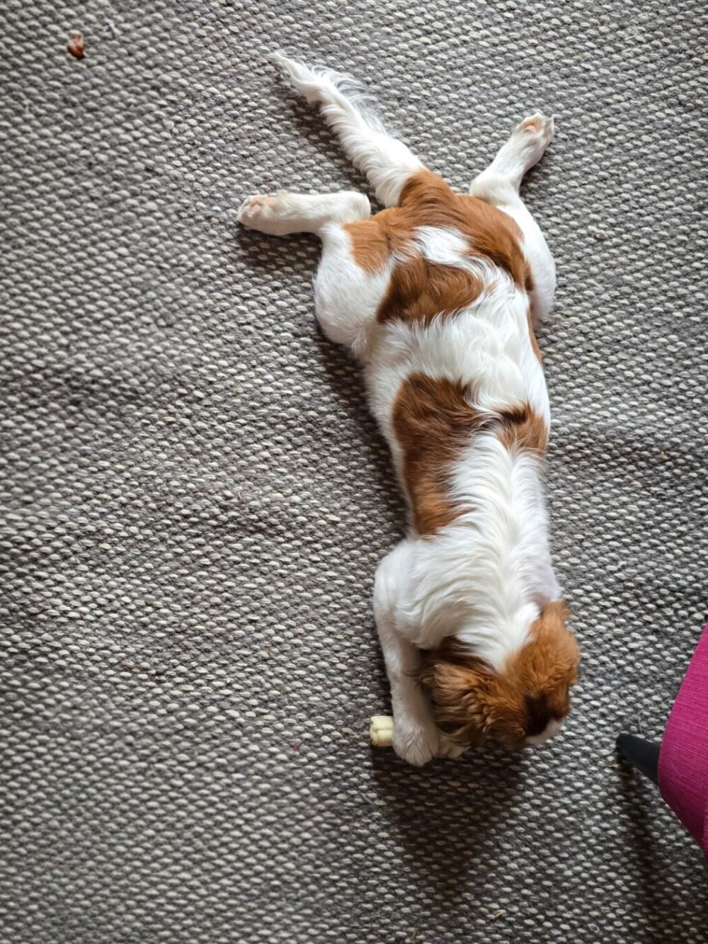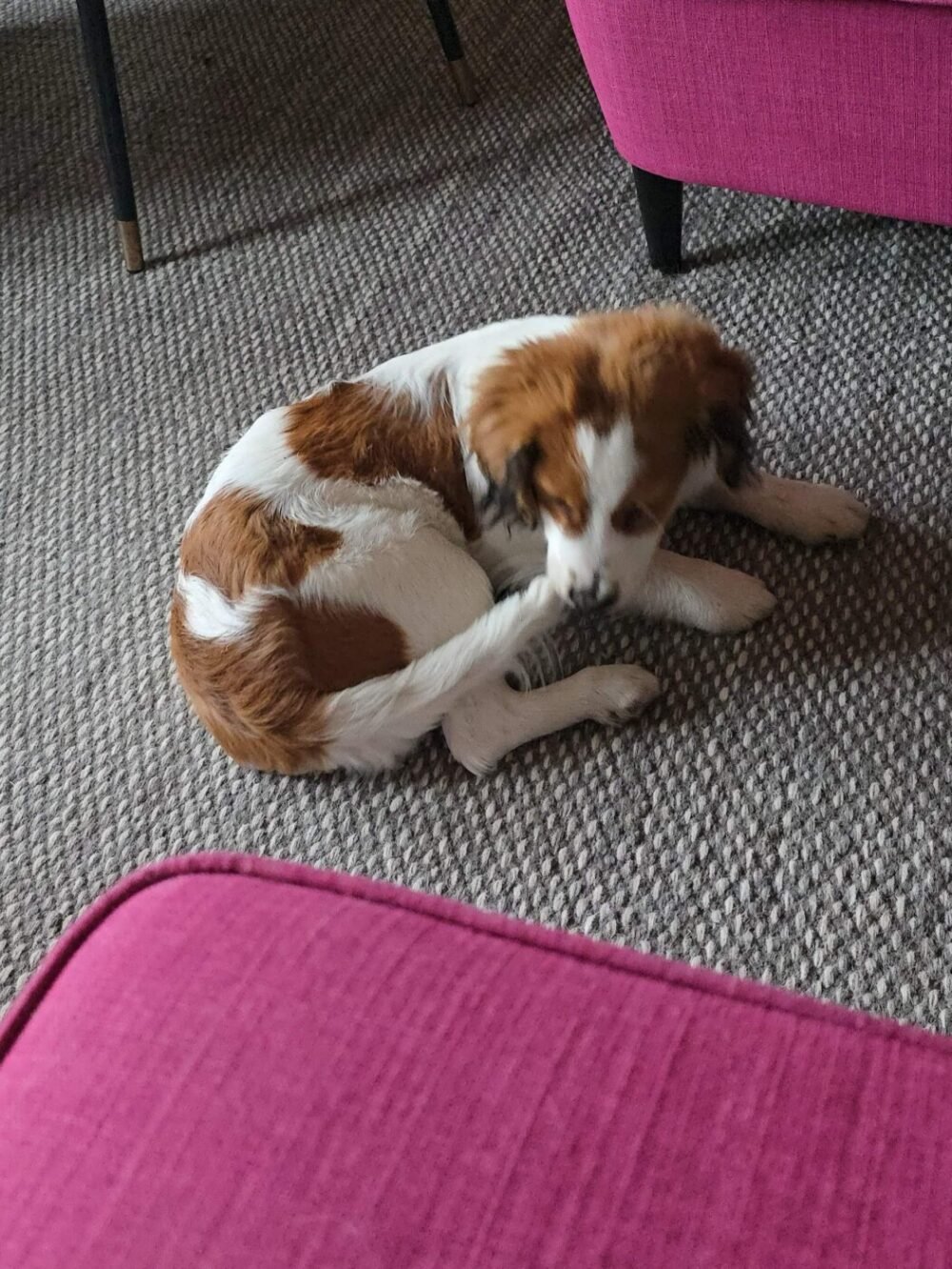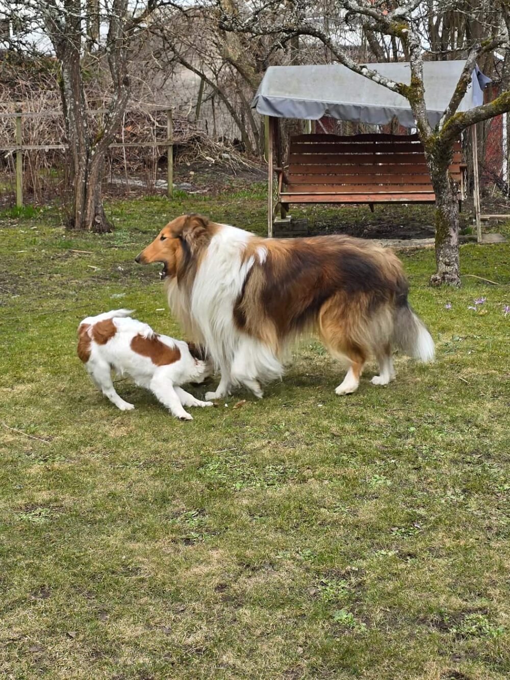 Felix är lite större nu, och är inte lika orolig att inte vara nära så han får, liksom Ville, ha en långlina på sig när vi är ute och går i skogen.