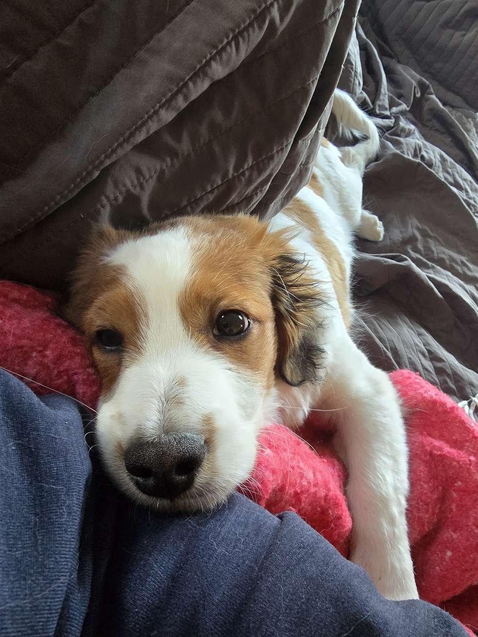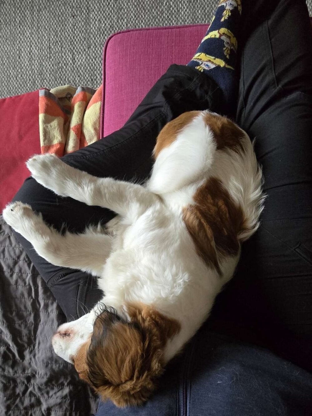 Vi har dessutom skapat en riktig knähund. Som jag skrivit tidigare har ingen av våra tidigare hundar varit gosiga eller velat var i knät, ens när de var valpar så vi har tagit igen det nu med Felix, som väldigt gärna ligger i knät.