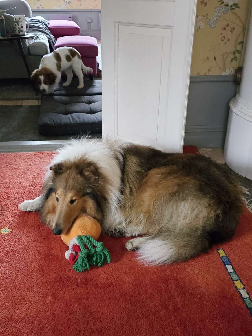 Han har helt enkelt fått lära sig att det ligger leksaker lite överallt. Ville tycker också om att leka, men han är inte intresserad av alla leksaker, inte ens när Felix går runt med dem i munnen och struttar framför Ville för att försöka fresta (och ja, Felix struttar verkligen framför Ville).