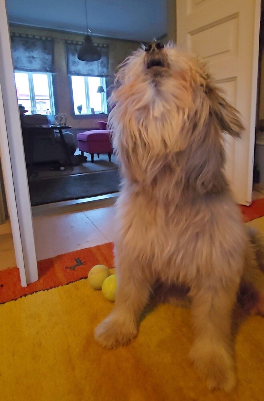 IggyPop. Som alltid välkomnade dig hem med ett yl. Här väntar han på att husse ska komma hem så att han får yla lite.