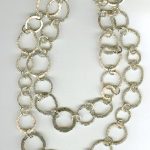 Efter ihoplödningen plockar jag fram min hammare. Jag har tänkt mig lite platta ringar och då måste jag hamra. Plattar till samtliga ringar. Ser inte så silveraktigt ut i det här läget, eller hur? Efter hamringen filar jag till ringarna lite där det inte är riktigt jämt och snyggt. Nu har jag således en massa platta ringar. För att kunna få ihop dem till en kedja måste de gå att sätta ihop dem också. Därför måste jag såga isär hälften av ringarna igen. Helst skall jag lyckas såga på samma ställe som de var delade från början. Lyckades kanske ibland och inte ibland. Vet inte riktigt. Det var inte så himla lätt att se var de var ihoplödda förut. Nu kan man ju, som Eva gjorde i en kommentar, undra varför jag först lödde ihop ringarna en gång om jag ändå skall såga isär dem. Orsaken till det var att jag ville hamra ringarna. För att kunna hamra en ring platt måste den vara ihoplödd först. Och jag måste hamra ringarna innan jag sätter ihop dem. |