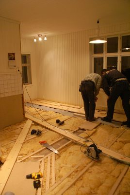 Ja, jag tror vi har kastat minst 20 säckar sågspån! Inom en inte allt för lång framtid skall jag nog kunna visa hela golvet! Hoppas, hoppas att vi har köpt golvplank så att det räcker bara. Går inte att köpa nytt på nyårsafton!