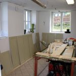 Det händer saker i köket. Inom en inte alltför avlägsen framtid skall det nog gå att lägga golv också. Till vänster i den högra bilden skall det läggas nya klinker framför spisarna. Grafitgrå istället för den röda som skymtar i bilden till vänster. Det här är spännande.