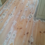 Nu har jag börjat med golvbehandling. Just nu kör jag med vår lilla Mouse över golvet. Vi snackar ju inte golvslipning i vanlig mening, jag skall bara rugga upp ytan så att den tar emot oljan bättre. Och jämna till mellan några av plankorna där det blivit lite kant. Är klar med lite drygt halva golvet och kör resten imorgon. Plus att jag hoppas lägga första lagret olja imorgon eftermiddag eller kväll. Så får det torka ordentligt över natten. Skall bli ytterst spännande. I rutan till vänster skall det alltså läggas grafitgråa stora klinkersplattor.