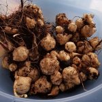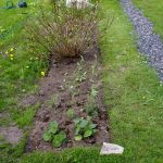 Juni fram till midsommar var kall. Riktigt kall. Det verkade som att alla växterna bara stannade upp. Inget växte – det bara överlevde. Men en del har allt börjat växa i alla fall. Tog en bild på min dahliarabatt häromdagen. Jag tyckte att det inte hänt någonting sedan jag planterade dem den 1 juni, men när man jämför bilderna så har det faktiskt hänt lite i alla fall.