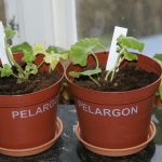 Skrev häromdagen att jag planterade om mina fuchsior och mina pelargoner. Det verkar som att de verkligen väntat på det för redan idag hade flera av fuchsiorna kört igång. Bland annat mitt fuchsiaträd som jag stammade upp förra sommaren. Lite orolig har jag varit för det trädet för jag har hört att de kan ha svårt att överleva första vintern. Jag behöver inte vara orolig, det har redan börjat sätta igång att bli grönt.
