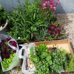 När jag var på Plantagen passade jag på att köpa en balkonglåda. För att se om det skulle funka på trappan. Jag tycker nog att det kan bli ganska bra faktiskt!