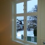 Hepp! Nu har vi två nya fönster. Vilken skillnad! Och då har vi ändå mycket kvar. Jämför med det fönster som fortfarande finns kvar på andra våningen (det första hann fösvinna innan jag kom fram med kameran). Vi tänkte inte på det när vi mätte, men de gamla fönsterna har väldigt tjocka karmar så de nya fönsterna, fast de är lika höga, ger mer fönsteryta. Positiv överraskning.