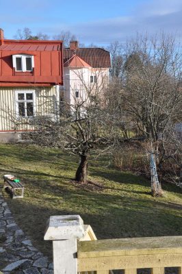 Idag har det varit blå himmel hela dagen. Solen har varit framme och det har varit så härligt. Snö finns bara kvar där det legat i högar, i övrigt är den borta. Riktigt, riktigt härligt. Jag ville inte jobba. Jag ville hämta Gandalf och gå en långpromenad. Men det blev inte något med det. Istället blev det en lång dag på jobbet. Trots det så lyckas man njuta av en sån här dag. Imorgon när det är ljust ska jag se om kanske, kanske någon snödroppe är på väg. Lökarna har i vart fall fått lite fart igen, jag längtar efter att se vad som kan tänkas komma upp.