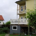 Eller det gör den inte heller egentligen. Ena trappräcket är borta. Det var ruttet och vältes omkull av hunden. Och det finns mer ruttet i den där verandan. Vi har tänkt bygga om den, men har efter mycket eftertanke konstaterat att vi orkar inte med det själva. I sommar ska resten av fönsterna fixas till och gärna lite mera. Men i vart fall fönsterna. Så vi har valt att leja ut jobbet med verandan. Igår hade vi en snickare på besök. Vi tänkte oss att det skulle vara bra att få tag i en snickare och så planera in arbetet, förhoppningsvis under sommaren, men senast under hösten. Nu visade det sig att den här snickaren hade en lucka nu. Vi har tänkt och vi tycker att snickaren kändes bra och vi ska slå till. Så nästa vecka är tanken att de kör och att vi alltså har en ny veranda om en dryg vecka. Kan det verkligen var sant? Vi kommer att ha arbete kvar att göra på den, men den kommer att vara på plats. OM inget oförutsett trillar in. Så nu ser jag hela tiden bilder i huvudet. Om allting går som det är tänkt ska verandan bli lite större och när den är klar se ut ungefär så här. Vi tänker oss att vi ska ha en markis som vi fäster under balkongen och som vi kan rulla ut när det regnar.
