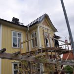 Idag har makens pappa varit här. Som vanligt blir det mycket gjort när han är här. Byggnadsställningen har plockats ner. Och ett nytt stuprör har kommit på plats. Kolla bara!