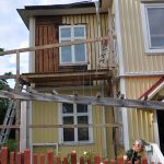 Förra året byggde vi vår veranda. Eller i princip bytte ut vår gamla ruttna. Och kunde i princip inte använda den alls eftersom det regnade och var svinkallt hela sommaren. Vi bestämde då att vi skulle skaffa oss en markis. Inte för att skydda oss från solen utan för att kunna sitta på verandan även vid regn. Sagt och gjort, i år har vi beställt en markis. Och igår satte vi upp den. Jag har varit lite orolig för att det skulle se väldigt stort och klumpligt ut när den väl kom på plats, men jag måste erkänna att när den väl kom upp så tycker jag inte den stör speciellt mycket alls. Och än mindre kommer det att bli när det finns räcken även på balkongen.