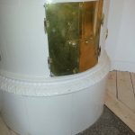 I arbetsrummet är också alla snickerier uppe nu. De behöver spacklas och målas också, men sedan behövs det även här något i fönsterna. Inte heller här vet jag ännu vilken färg det ska vara så det blir till att fundera lite. Men det behövs något ganska snart för i och med att snickerierna kommit på plats så har den fina plasten som tidigare täckt fönsterna tagits bort och det har blivit full insyn. Vi får se om det blir något temporärt – eller om jag kommer på något som får fungera även senare.