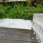 Det sista hörnet. Det har kommit upp en byggnadställning på verandan.