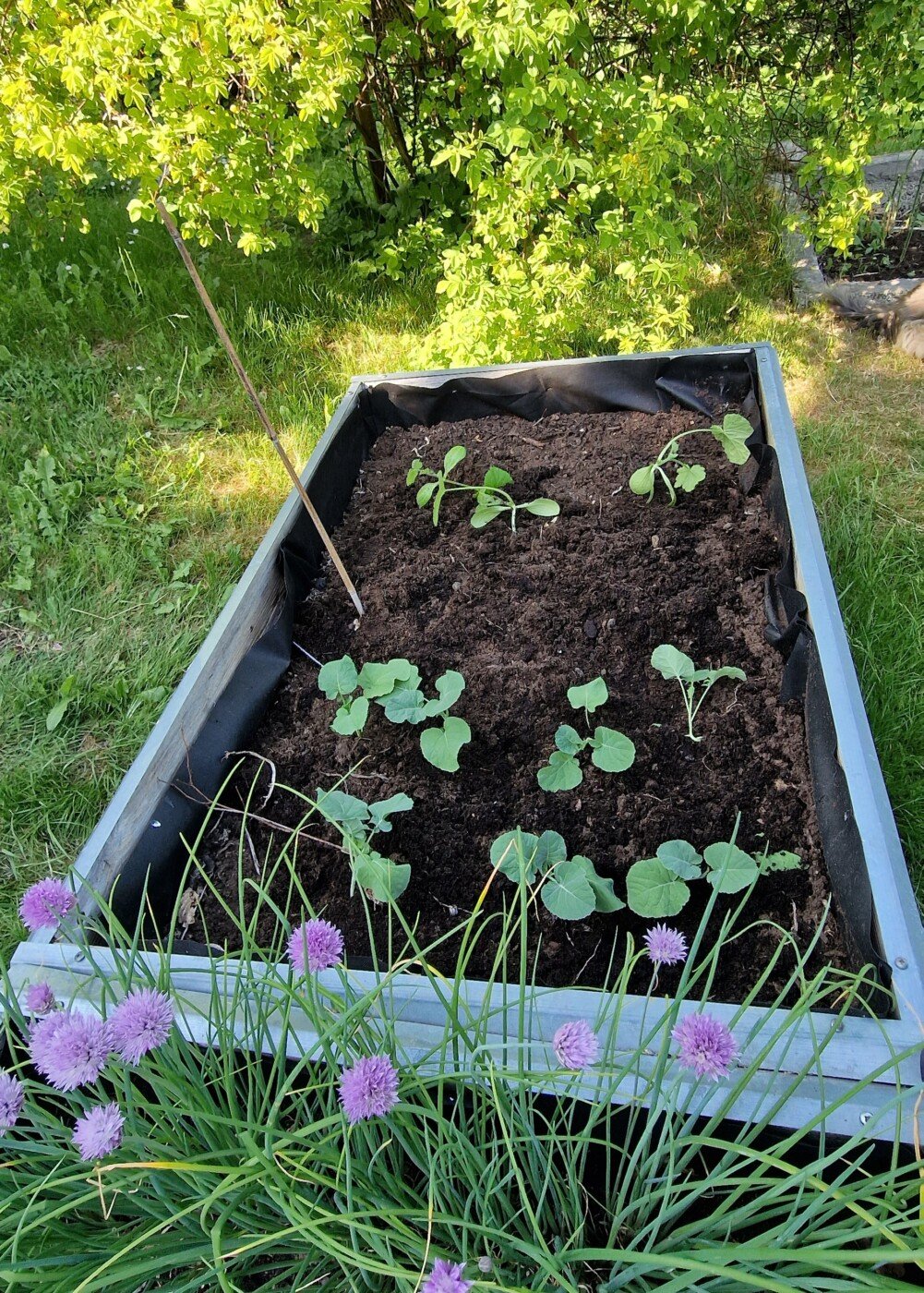 Men de hade fel! Vi har haft jättefint väder i helgen, förutom att det varit kallt då. Jag fick för mig att jag skulle fixa lite i trädgården, bl.a. sätta lök. Tills jag konstaterade att det ska vara ca 10 grader i jorden för att plantera lök och det har vi då rakt inte. Här är kallt. Så det blev lite annat gjort istället. Jag förberedde mina pallkragar för plantering – dvs blandade i gödsel och lite aska i jorden. Plus rensade bort ogräs.