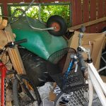 Fulla med ogräs och dött från förra sommaren. Jag har inte tänkt plantera något i dem i år, men min tanke är att om jag rensar dem, häller på ny jord och ser till de är redo inför nästa år. I vanliga fall tycker jag om att ha lite sallad och annat som vi använder i maten. Men i år hade jag bara ingen lust. Den ena pallkragen var full med överväxt lök och gräslök som började bli riktigt ful. Den rensade jag också, satte i ny jord och rensade bland gräslöken. Drog upp alltihop och planterade tillbaka en del av den bara. De övriga har jag bara rensat. Jorden får komma lite senare.