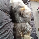I ett par dagar nu har det varit väldigt konstig väder. Det har varit åska i luften så det har kanske berott på det, vad vet jag. Men luftfuktigheten har i vart fall varit väldigt hög och saker och ting tar evigheter på sig att torka och det känns som att det är en fuktig hinna över allting. Idag har det dessutom varit ganska varmt. Tog en promenad med hundarna och Iggy var också ganska påverkad av vädret. Den andre som var påverkad var alltså jag. Ville verkade inte bry sig ett dugg. Men vi tog oss en ganska rejäl promenad i alla fall. Iggy bestämde dock att vi skulle stanna och vila vid ett antal bänkar. Och när jag tog dem till en bäck så blev båda väldigt, väldigt nöjda.