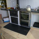 Nu hoppas jag att vi ska ha det varmt i köket nästkommande vinter! Vi har tänkt platsbygga en bänk där korgstolen står, men det får bli ett senare projekt. Tanken är att det ska gå att sitta på bänken, men också att ha antingen återvinning i själva bänken eller kanske några pelletssäckar. Men som sagt, ett senare projekt.