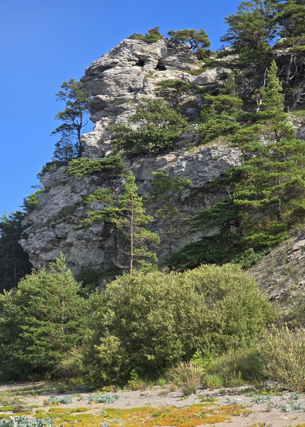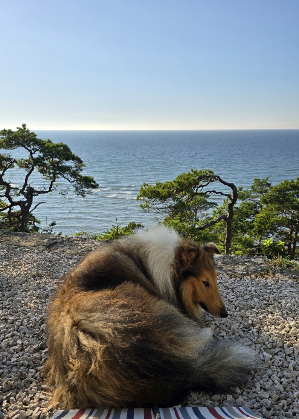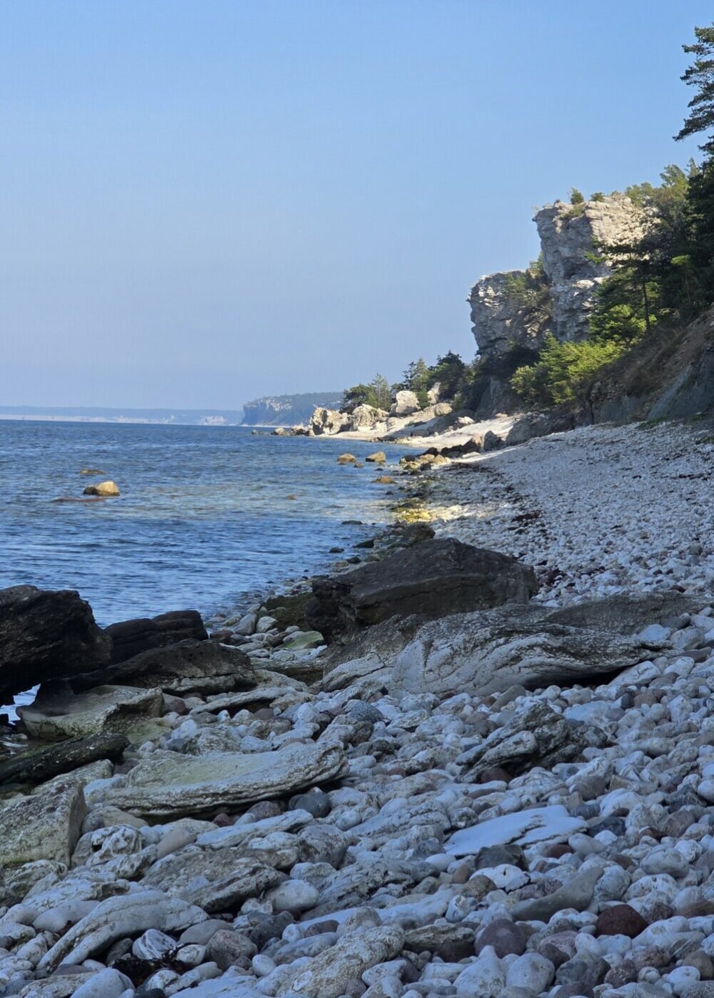 Den promenaden innebar en fem kilometer längs med klippig strand och sedan fem kilometer genom skogen. Utgångspunkten var våran stuga eftersom den, som sagt, låg precis där.