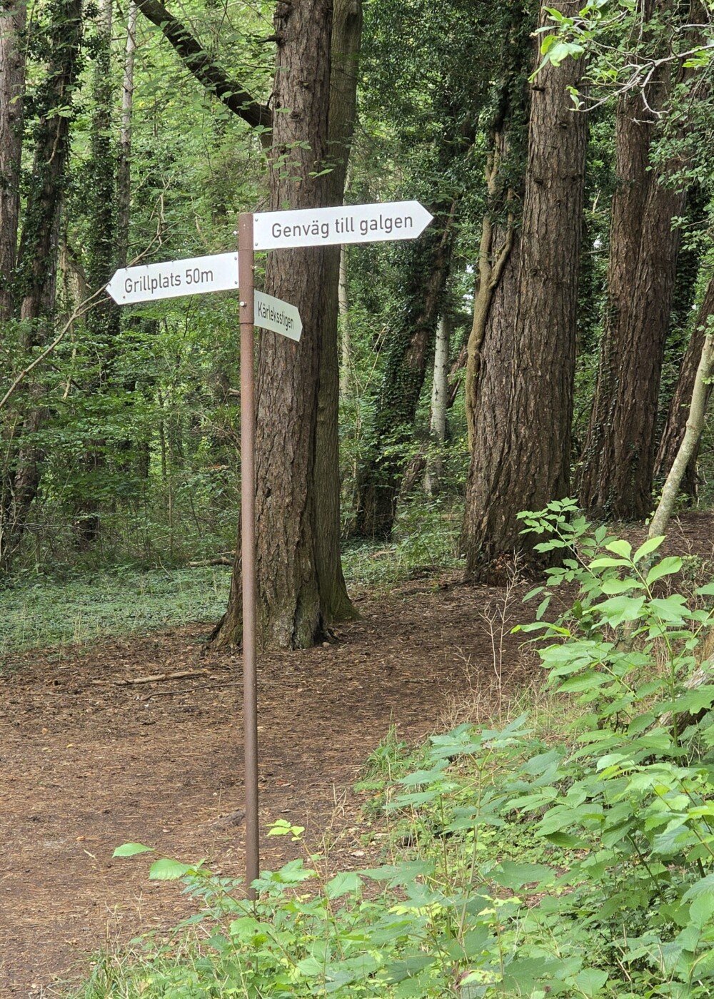 När vi besökte Visby passade vi på att gå Hälsans stig i och utanför Visby. Den går längs med strandpromenaden och sedan genom skog tillbaka. Jag bodde för många år sedan dryga två år på Gotland, men jag visste inte att det fanns så gammal skog precis utanför Visby. Det finns uppenbarligen alltid något nytt att lära sig. Och för den som så hade behov var det tydligt utpekat hur du kommer till galgen.