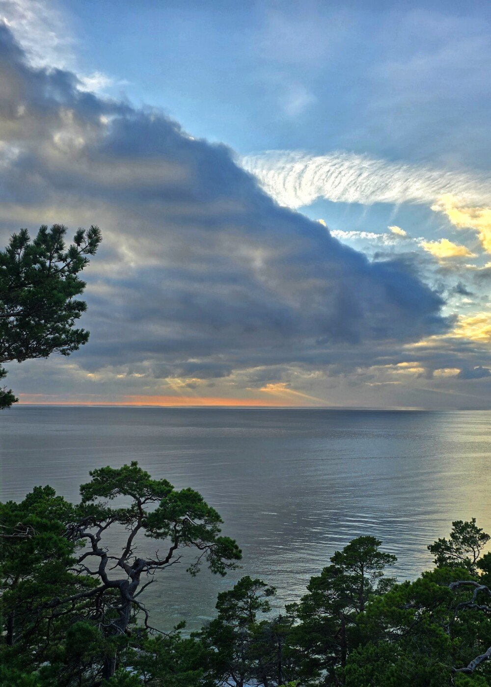 Den här stugan bodde vi i. Och ja, det är havet och solnedgången precis utanför. Det var en glasveranda mot havet och en liten uteplats utanför verandan. När vi var i stugan var det på glasverandan eller uteplatsen vi satt. Oavsett så såg vi havet och hörde hur vågorna slog mot klipporna. Några bilder från uteplatsen.