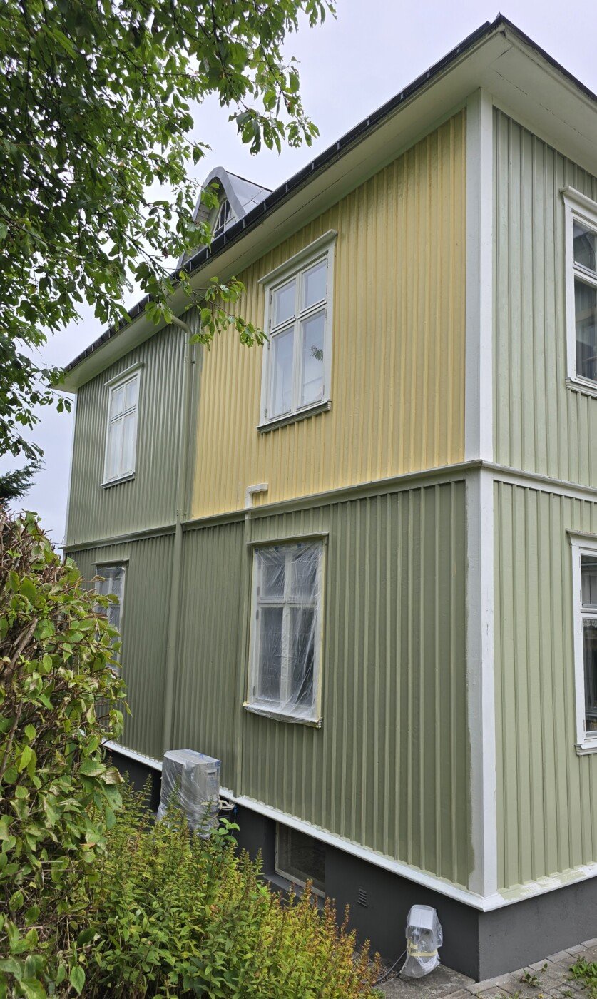 Och hemma hade målningen av huset fortsatt. Det enda gula som är kvar just nu är den här biten, annars är huset grönt överallt.