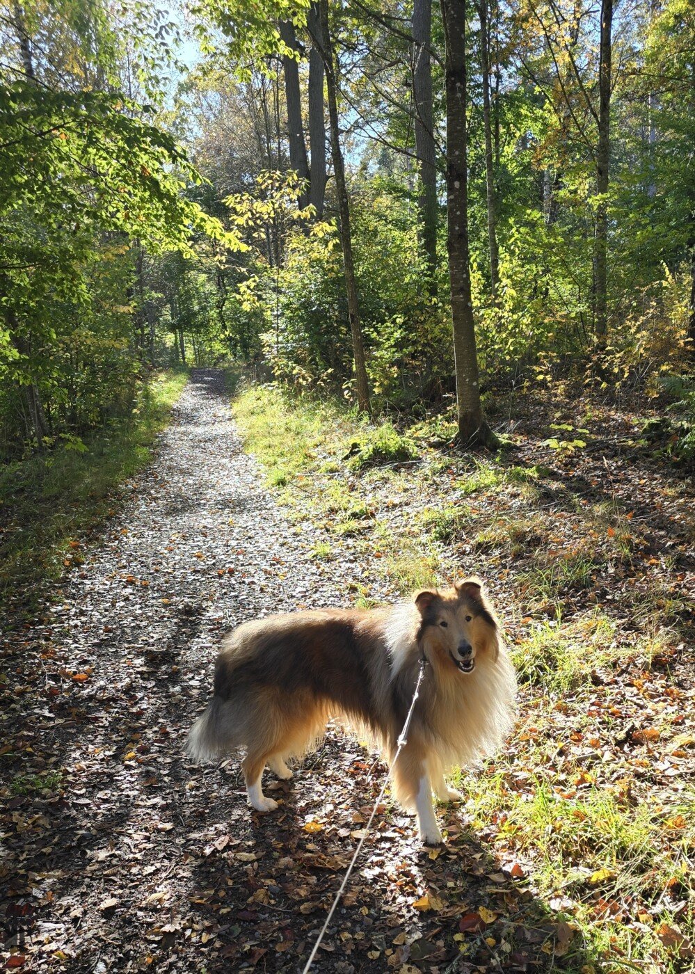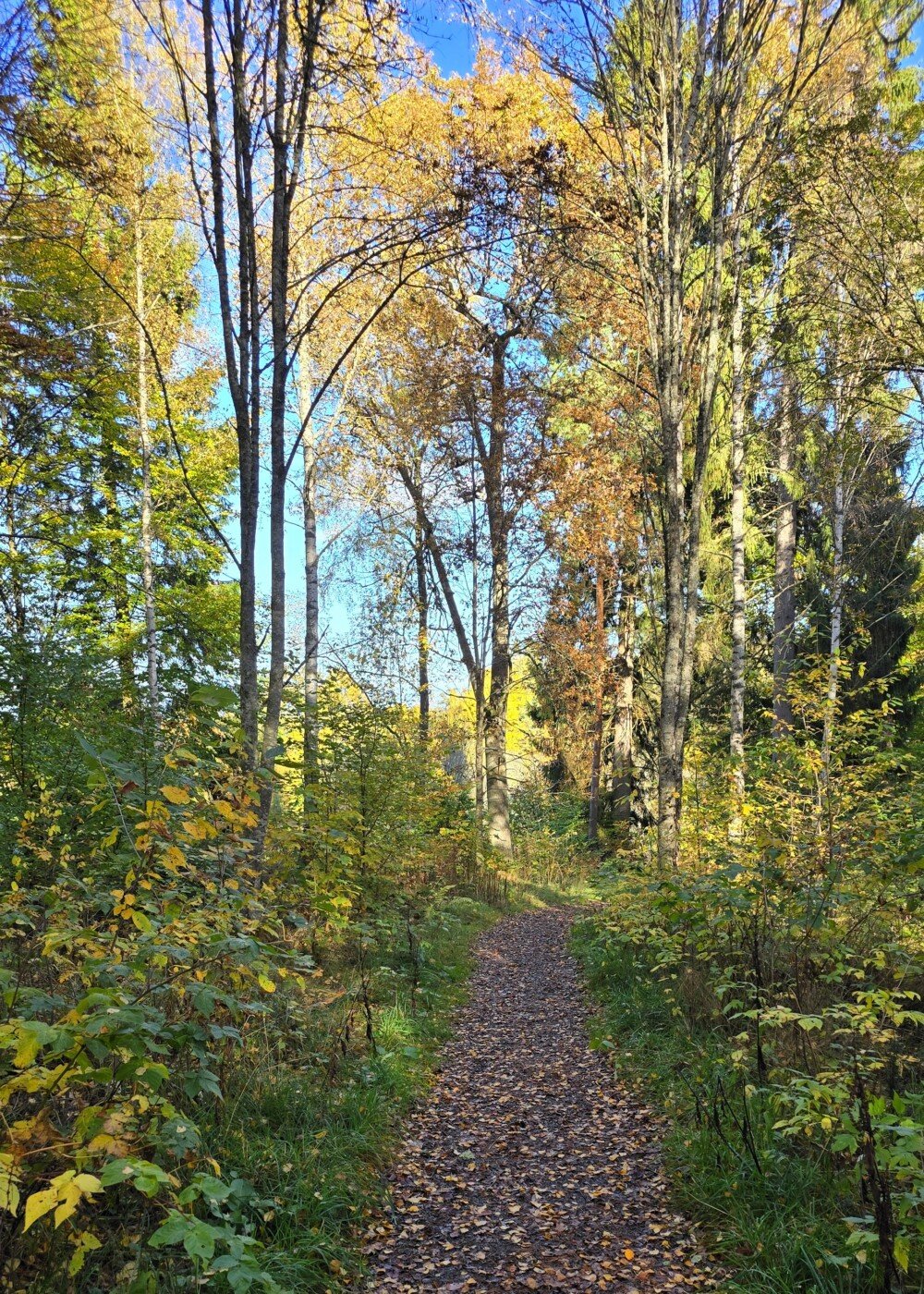 Idag har det varit en fantastisk höstdag. En sådan där som liksom är vad du tänker på när du säger du pratar om fina höstdagar. Solsken och hög blå himmel. Vi tog oss en långpromenad i solen Ville och jag. Jag har äntligen börjat tycka om att promenera på favoritrundorna igen. Under flera månader har det varit problematiskt för mig att gå vissa promenader. Jag har bara inte klarat av det. Idag gick vi en av favoritrundorna och det gick riktigt bra. Ännu njuter jag inte lika mycket som jag brukade göra, men jag kände idag att jag kommit en lång bit på väg.