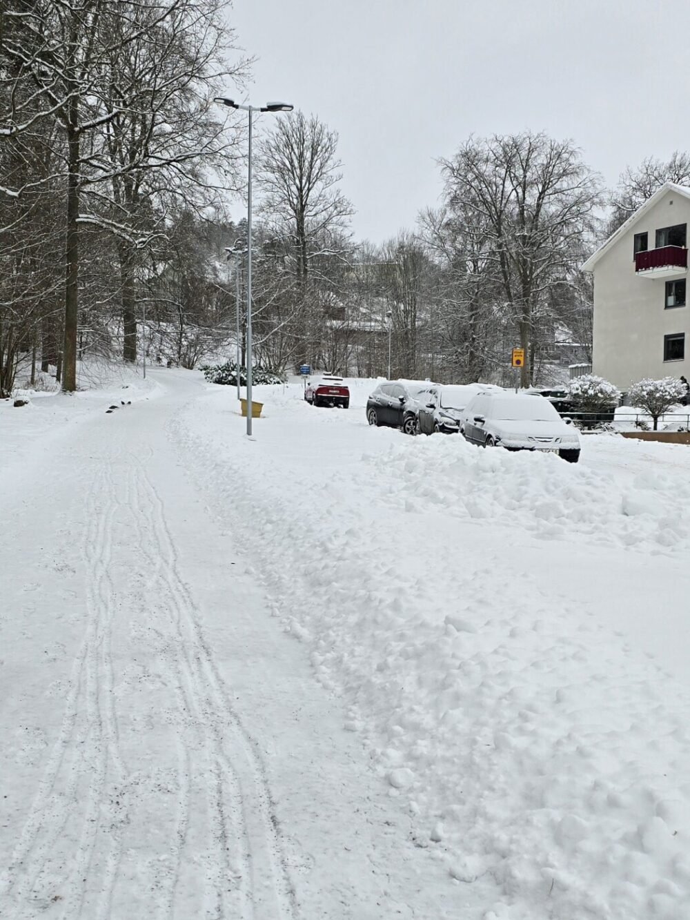 Plötsligt har vi snö nästan överallt. Vintern kom plötsligt och verkar vilja stanna kvar. Promenaderna går längs med gator med snö. Åtminstone häromkring så har plogbilarna inte varit så jättemycket.
