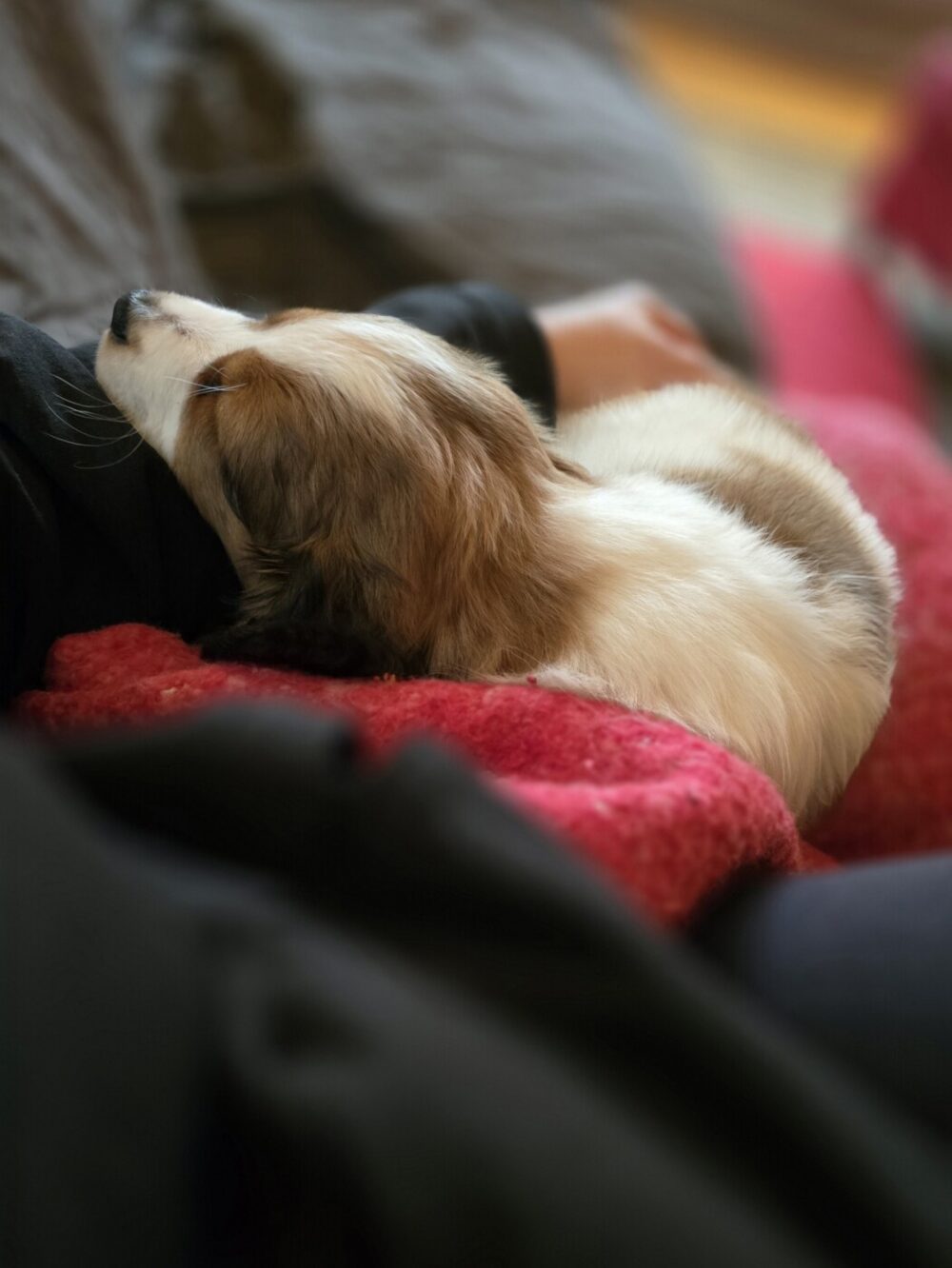 Och fortfarande så är det mycket sovande som gäller. Tycker om att ligga nära en. Ligger och sover i knät på maken när han jobbar hemma och får ta hand om valpen en stund. Ligger i mitt knä eller strax bredvid när vi tar en paus. Det är verkligen gulligt och gäller att passa på. Med allra största sannolikhet kommer det att gå över när han blir större.