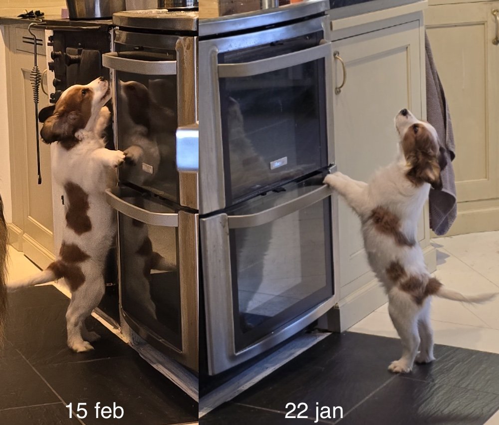 På tal om valpen så växer han på som han ska. Kolla bara skillnaden i storlek här.