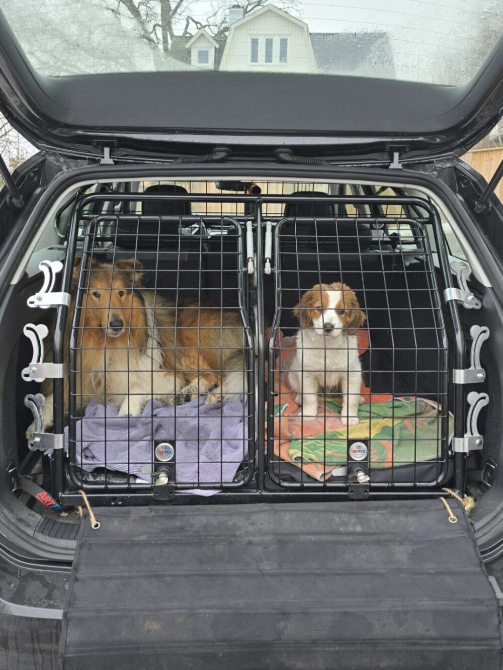 Felix har också börjat åka bak i bilen tillsammans med Ville. Vi har en bur i baksätet, där Iggy brukade åka, men nu försöker vi lära Felix att åka på båda ställena. Kan vara bra att kunna variera om vi vill ha packning med i bilen. Felix är väldigt nöjd med att åka tillsammans med Ville. Han gillar ju Ville.