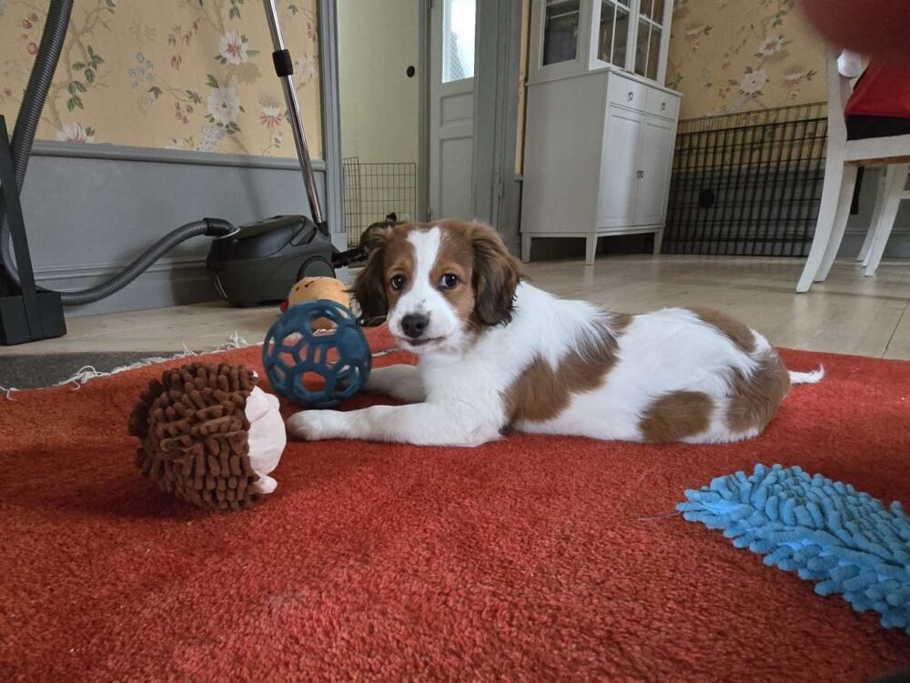 Satt och läste om hundens utveckling och då stod det att vid fyra månader, som Felix blir om en vecka, så har hunden uppnått ungefär halva sin vuxna vikt. Jag kanske får gå och väga honom om en vecka. Vi har en veterinär inom gångavstånd och jag brukar gå dit och väga hundarna emellanåt. Väldigt praktiskt. Och så får de vänja sig vid att gå in till veterinären också.