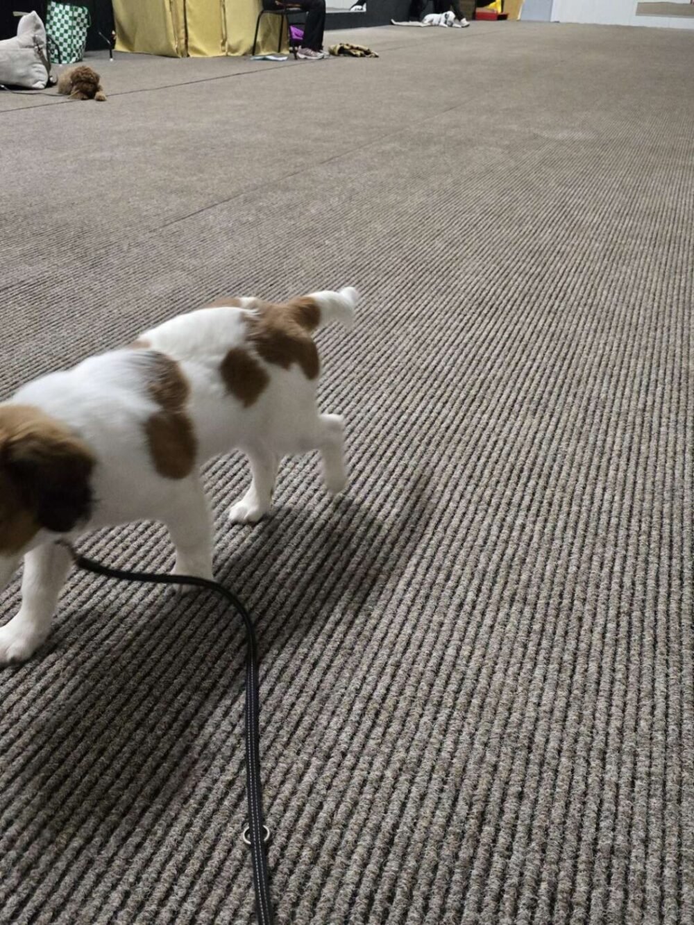 Vi har också börjat på valpkurs, gått en gång än så länge. Tog en fin bild när han satt på golvet (kursen är inomhus), tittade inte på den förrän lite senare och då såg den ut så här.