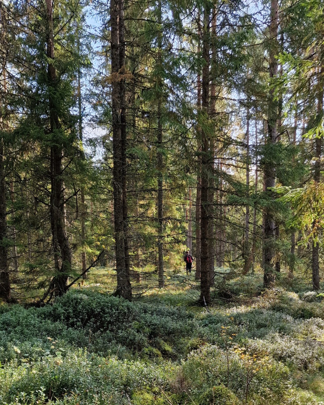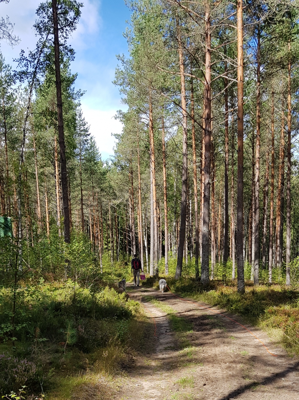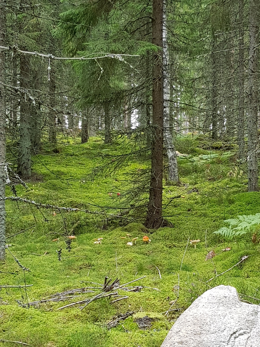 Vi tycker om att vara i skogen. Alla fyra. Det plockas bär ( i alla fall ibland – tycker det är fruktansvärt tråkigt) och svamp (vilket är roligt), det promeneras och det njuts. I skogen får själen ro och återhämtning.
