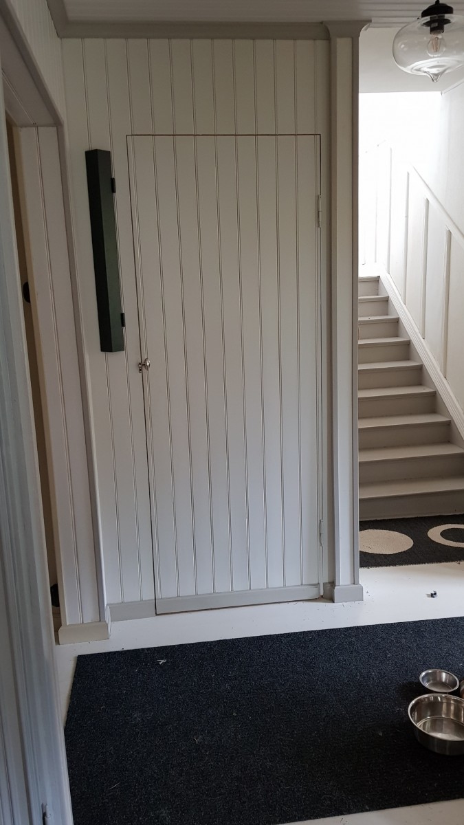 Vi har byggt om utrymmet vid och under trappan till ett jättebra förråd. Något som vi verkligen behövt.