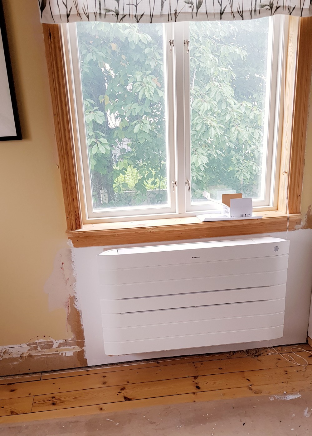 Installerat luftvärmepumpar. Uppe Daikin Nexura X25. Nere en Daikin Caldo XRH30. Plus två utedelar.